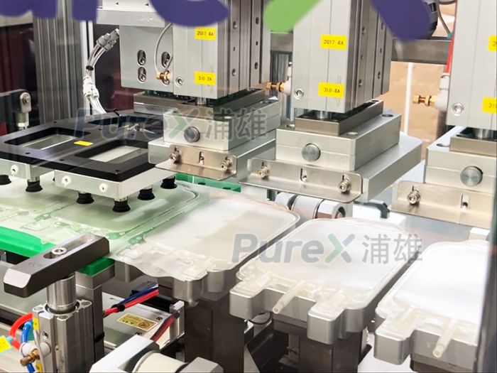 * **High Automation:** Modern liquid bag/pharmacy bag making machines typically integrate film feeding, printing, bag making, filling, and sealing processes into a single unit, achieving fully automated production. For example, the Puxiong production line can automatically complete all steps from film feeding to sealing, improving production efficiency.